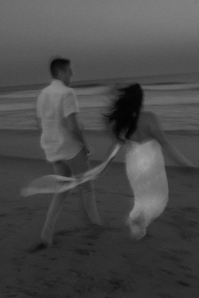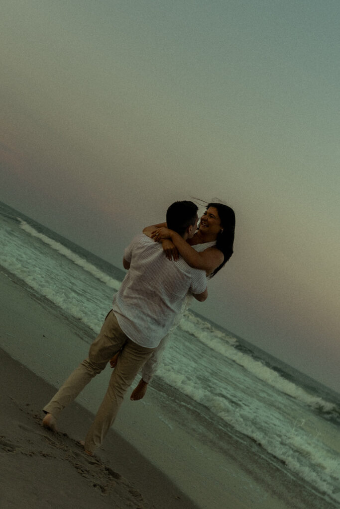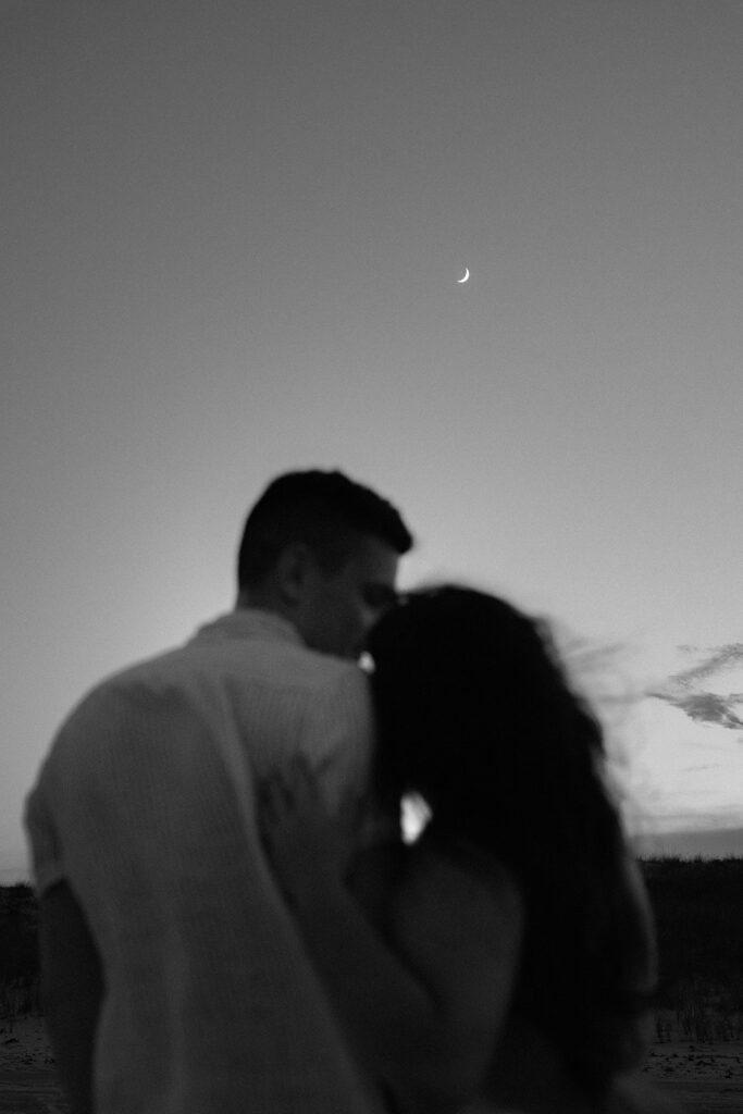 I’ve shot many sessions during blue hour – but this one was simply perfect. They both really wanted to incorporate the moon into their shoot, so blue hour was definitely the way to go. They both also love the beach, and wanted their engagement photos to feel both romantic and cinematic.