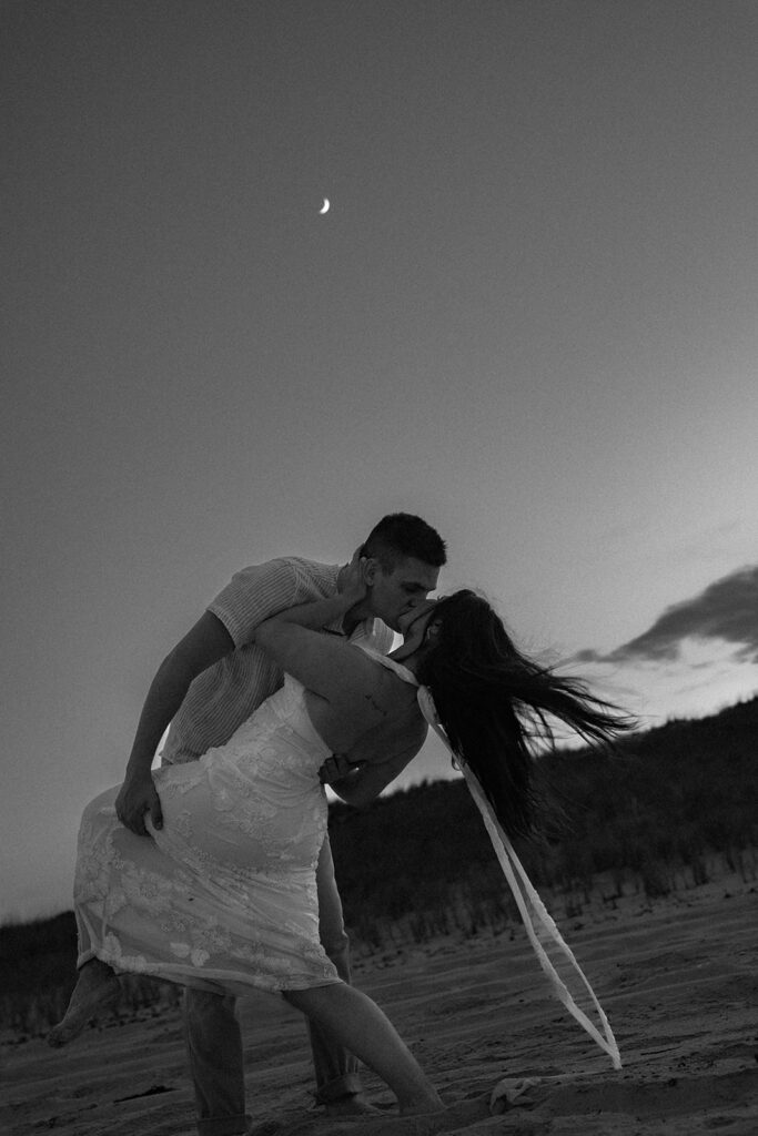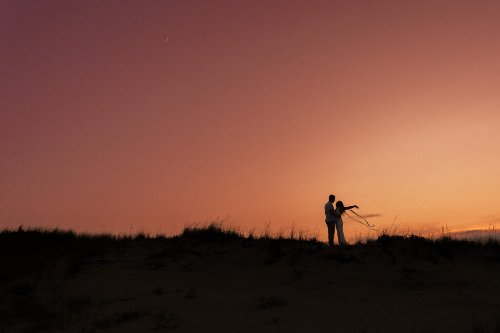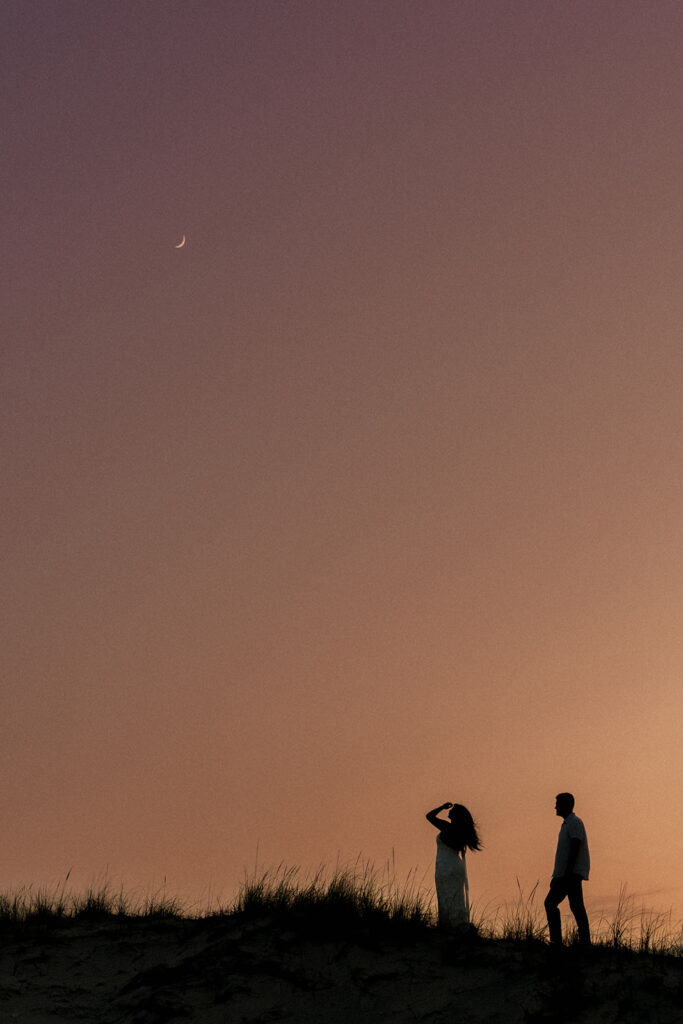 At the beginning, they popped champagne and toasted with a cute mirror that read their “save the date” – a personal touch that I thought was super cute and creative. After they were warmed up, we began with tons of movement: running, laughing, hugging – all those candid moments that really make you feel like you’re seeing snippets of a movie. I had them up on one of the sand dunes where you could see the crescent moon in the background. It was absolutely breathtaking.