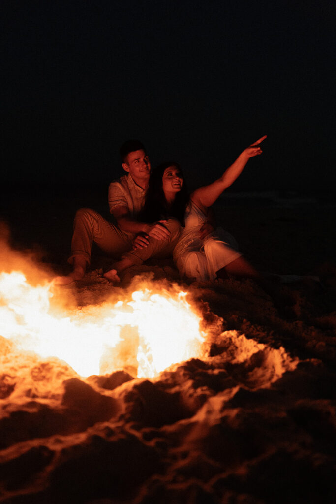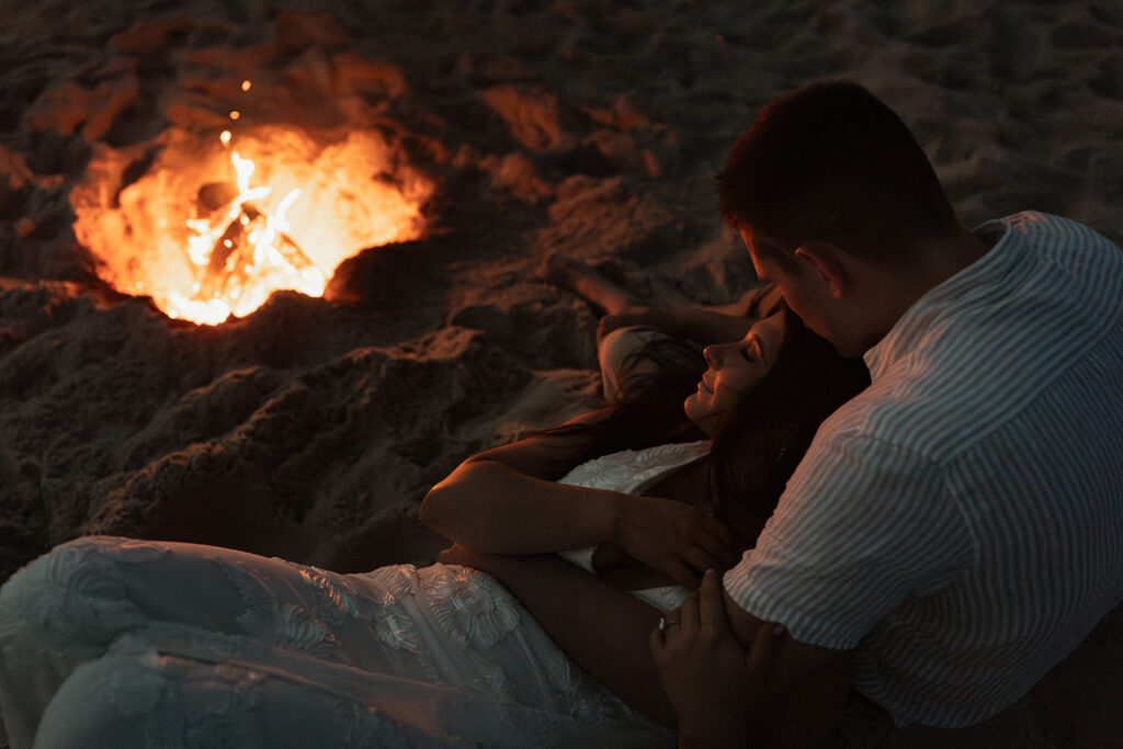 Alex and Ryan’s beach engagement photoshoot was truly one for the books! Between the champagne toasts, those incredible moon shots, and the cozy bonfire vibes, we captured exactly what they envisioned – pure romance with all those cinematic feels. They completely trusted the process and just went with the flow, which made for the most amazing gallery.
