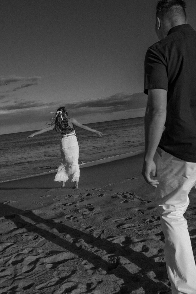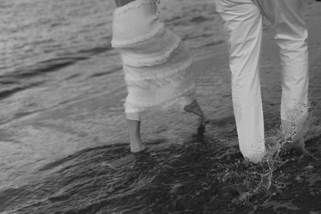 Some of my favorite shots of the night were of course with the rainbow – but also them running through the birds and Nicole having her goddess moment. At the end of their session, I had them get in the water, and those shots always come out so playful and fun!