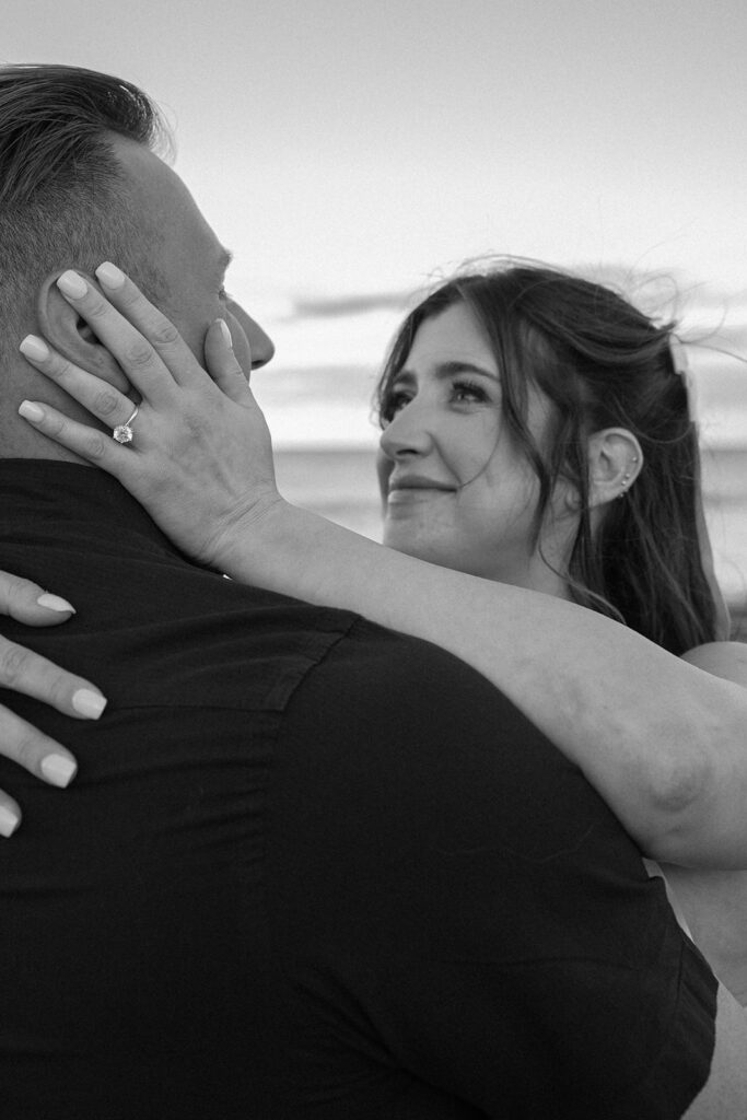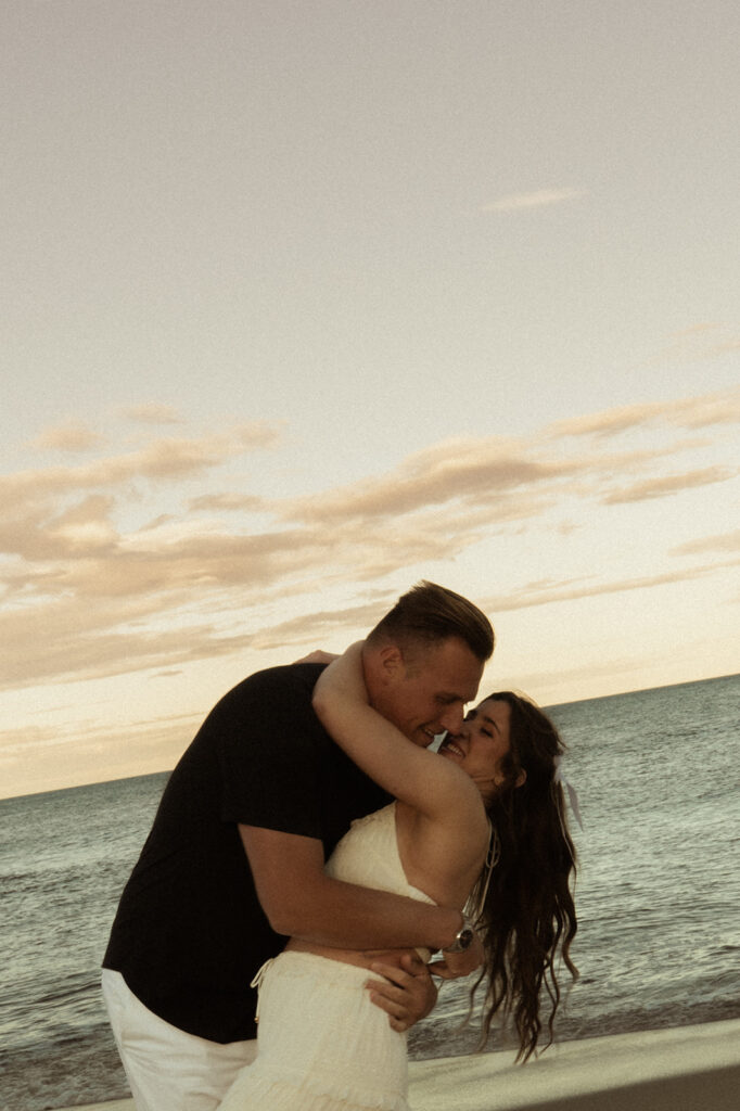 Nicole and Nick’s session perfectly captures why I absolutely adore shooting couples during blue hour! There’s something so romantic about beach engagement photos – the way the light reflects on the water, the genuine laughter that happens when couples just let loose and have fun together. As a NYC & NJ engagement photographer, I’m constantly inspired by the incredible scenery we have right here at home, and Long Branch, NJ never fails to deliver those breathtaking moments.