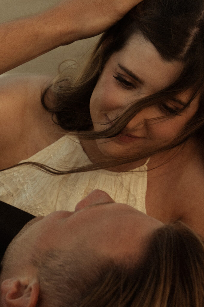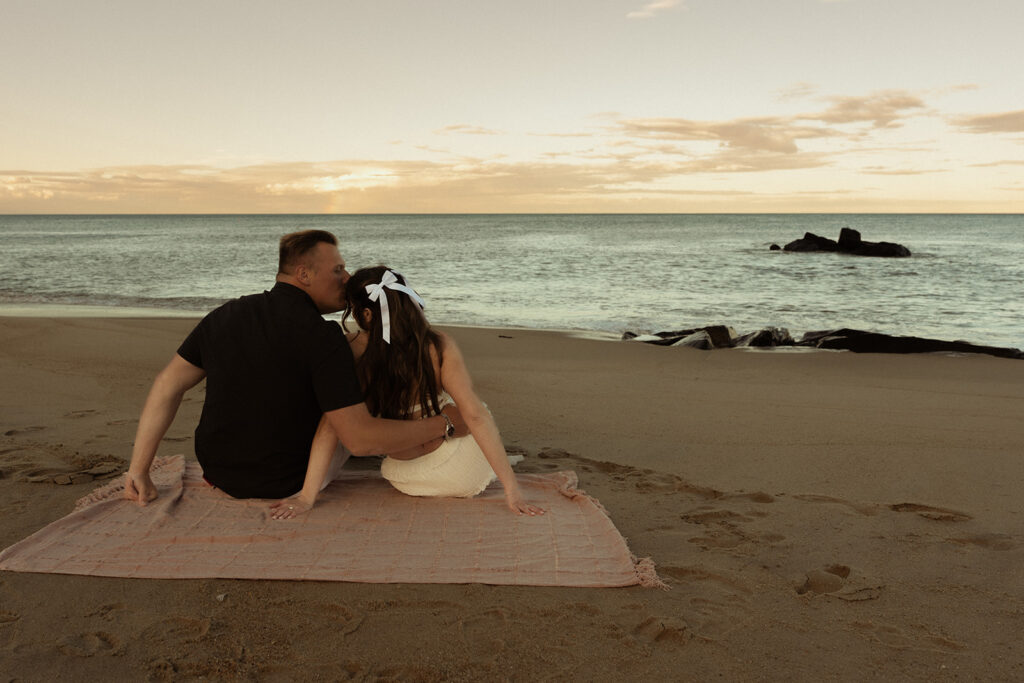 We began at sunset and it was absolutely stunning as always. Mother nature even granted us a rainbow! They both wanted their session to feel light and beautiful, so we walked through a few different scenes and concepts. We captured sweet moments like him picking her up and spinning her around, and they brought champagne and a blanket which added such a romantic touch to their photos.
