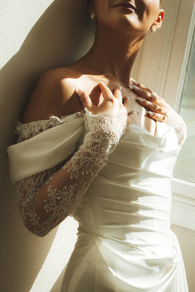 And speaking of dresses, Baillie was such a gorgeous bride, and I was absolutely obsessed with her dress. We captured some portraits of her fully ready by one of the windows, and the light was shining through just right.