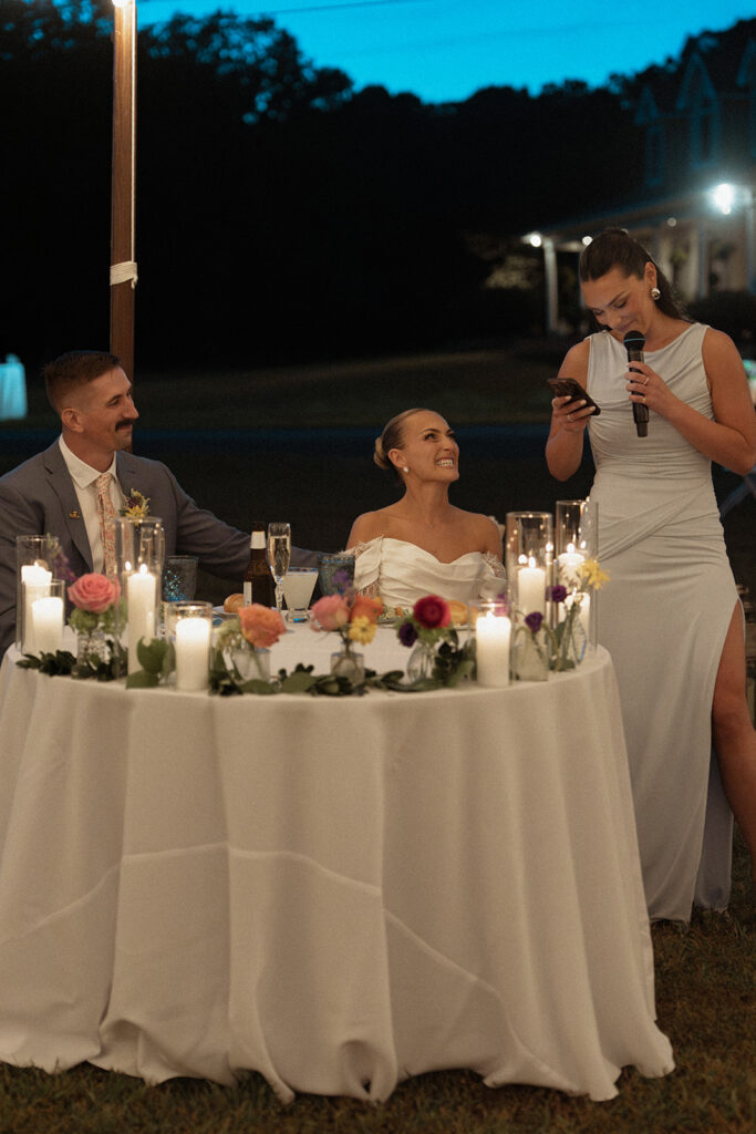 Their reception took place under a gorgeous white tent, with lights lining the ceiling and setting the mood for the night. They shared their first dances, heartfelt toasts and speeches, and spent the rest of the evening on the dance floor. Everyone was such a blast to be around, and the energy throughout the reception was so vibrant.